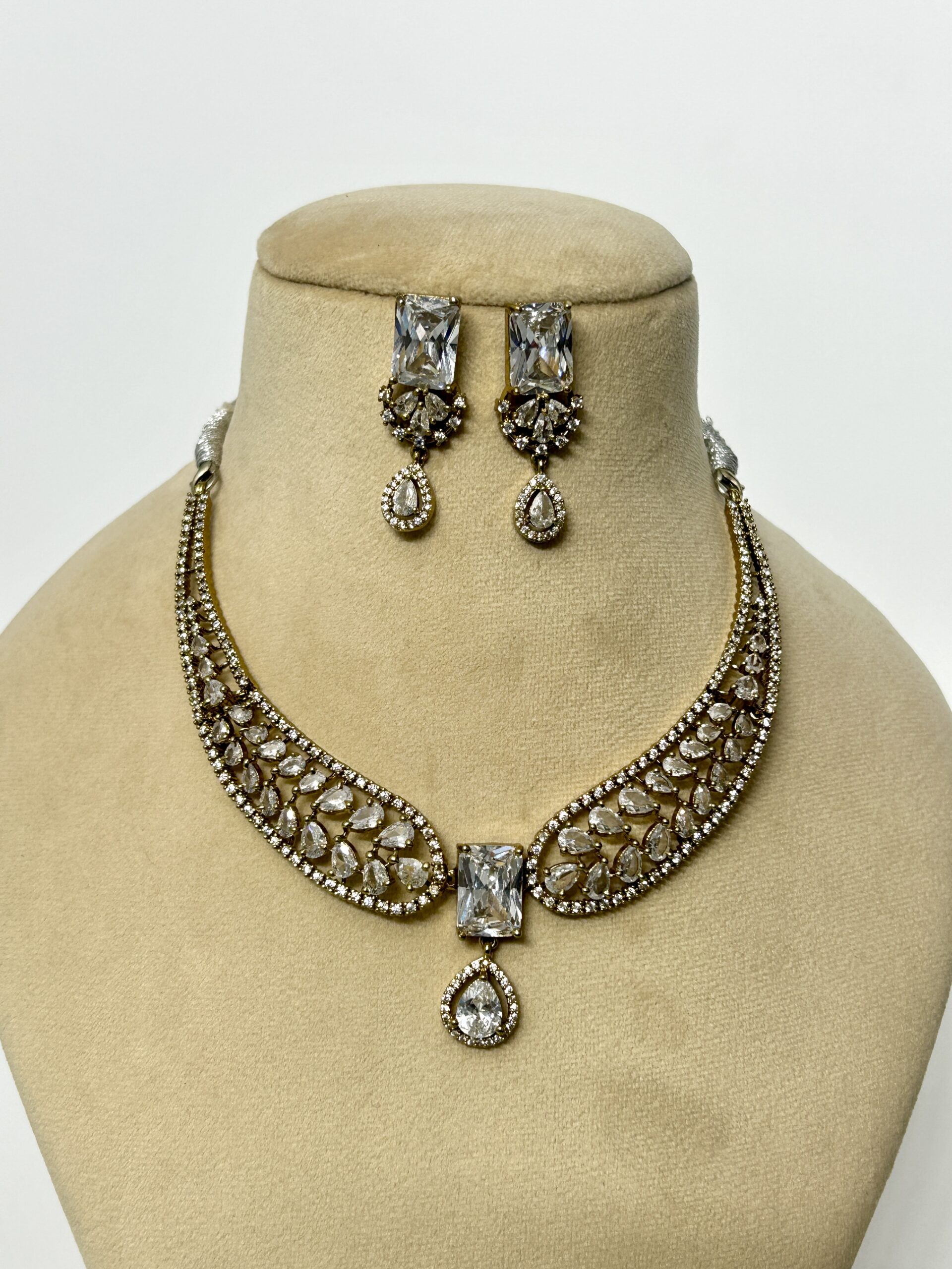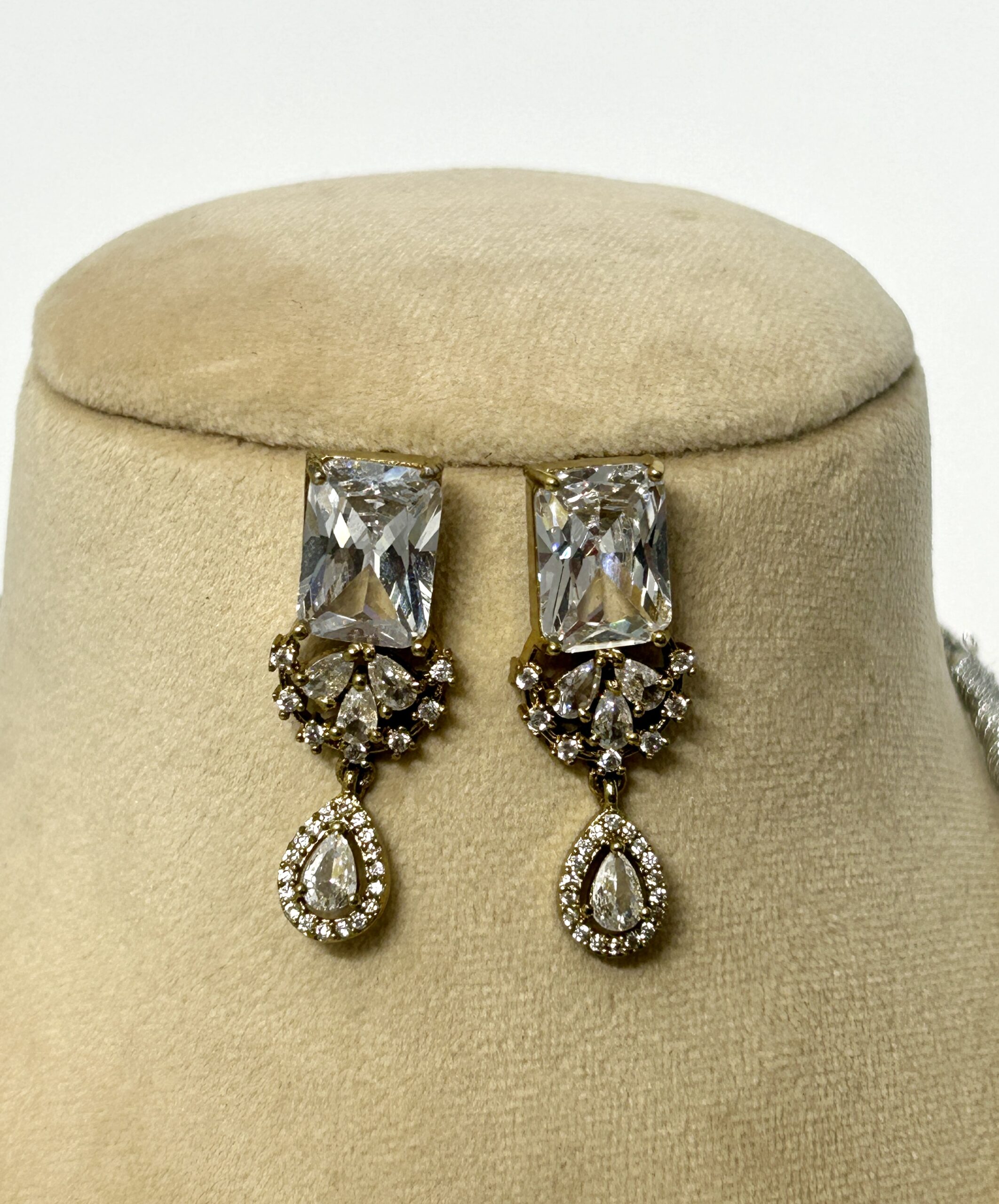 Elegant AD CZ Stone Necklace Set with Earrings – Party Wear Jewellery